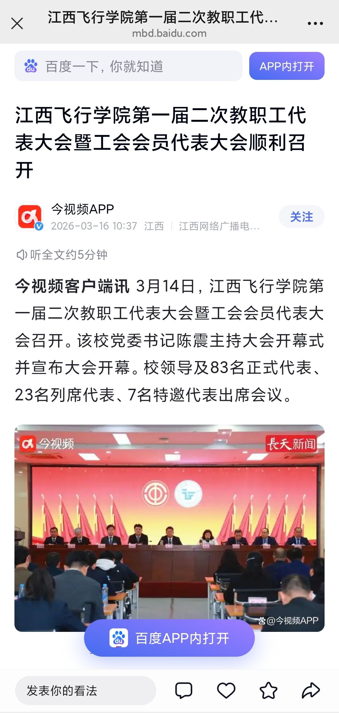 近日,百度网报道,江西飞行学院第一届二次教职工代表大会暨工会会员代表大会顺利召开详情如下: